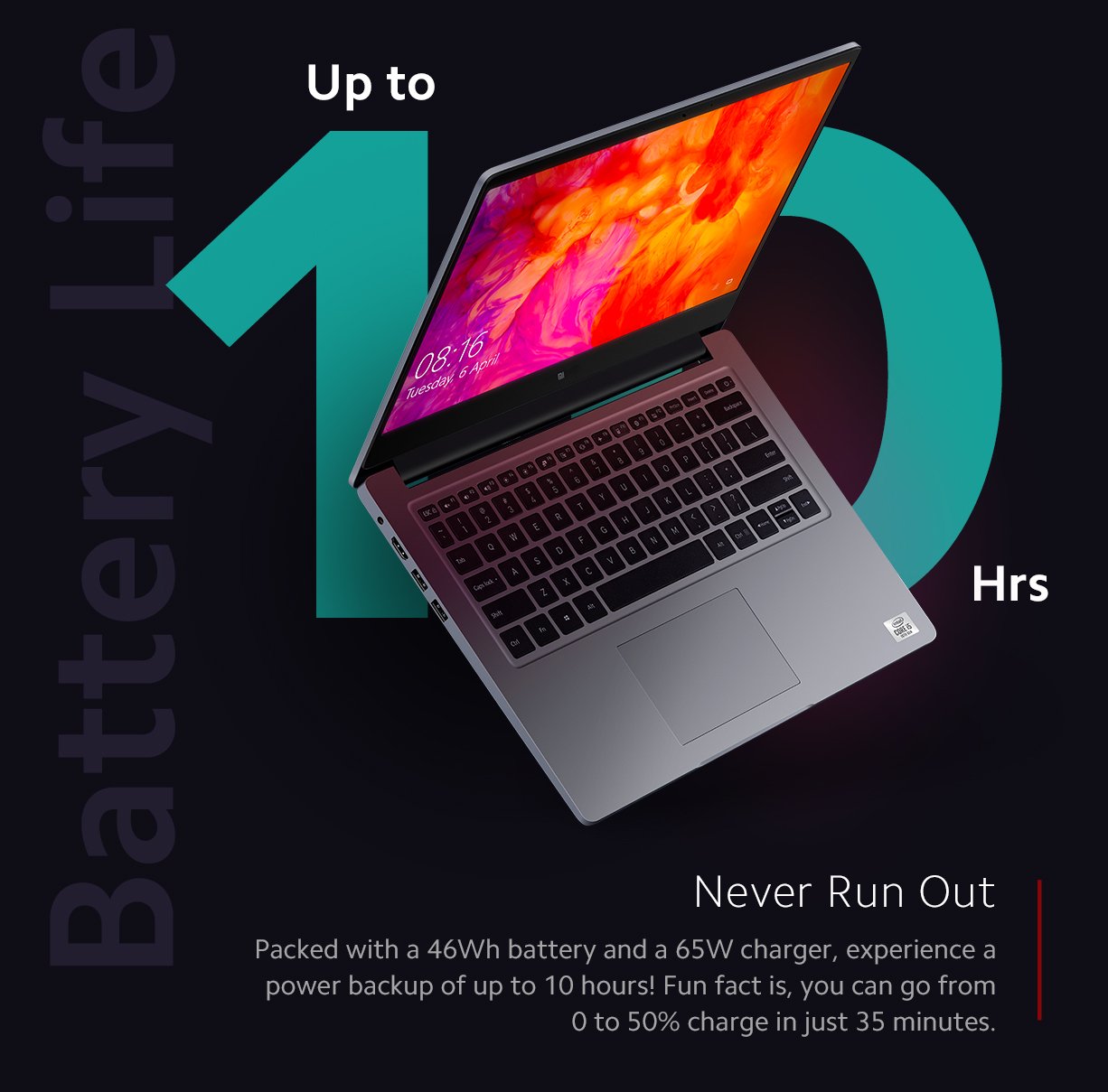 Ещё Mi Notebook 14 (IC) оснастили 14-дюймовым FHD-дисплеем с соотношением сторон 16:9, стереодинамиками, двумя портами USB 3.1 (Gen 1), одним USB 2.0, одним HDMI, а также разъёмом 3.5 мм для подключения наушников. Питается ноутбук от аккумулятора на 46 Втч. Его, по словам компании, хватит на 10 часов работы. Заряжается новинка через 65-ваттный блок питания.